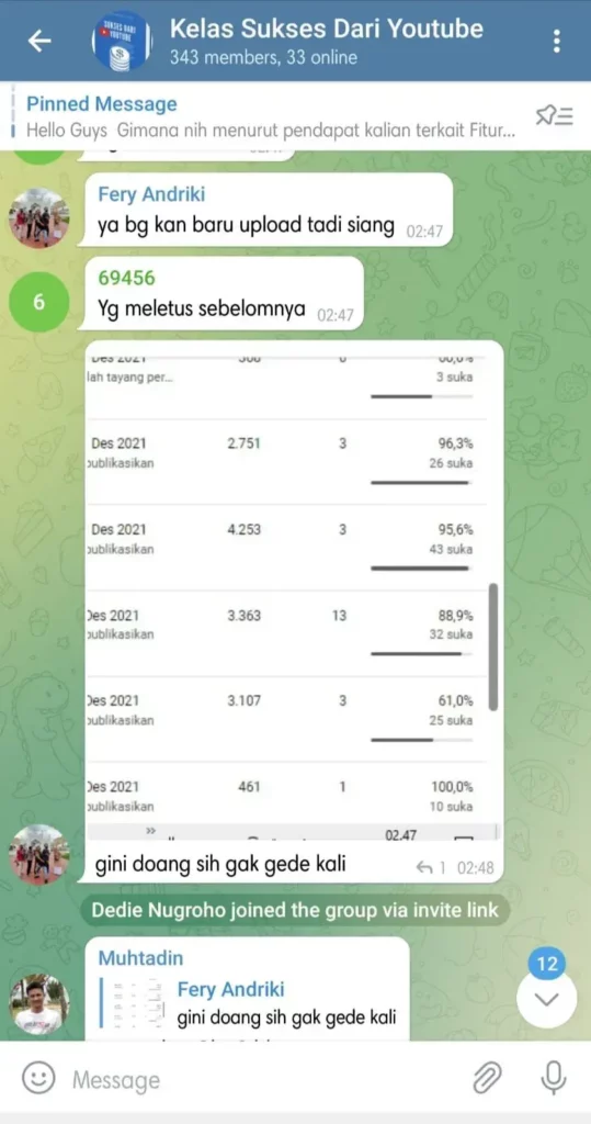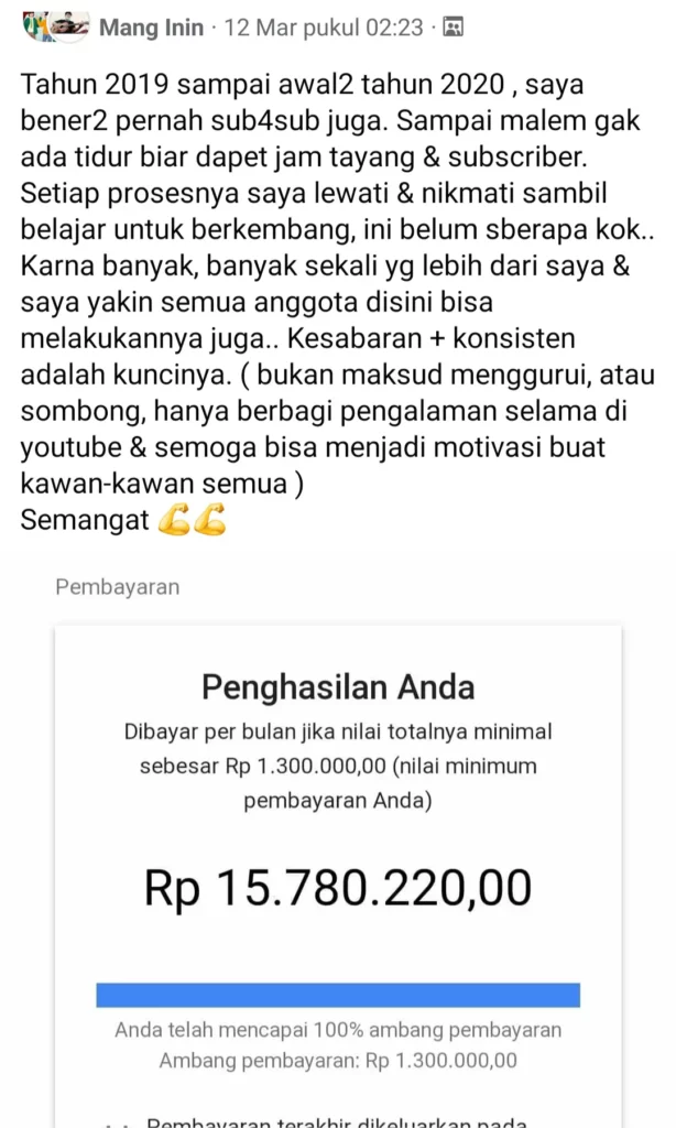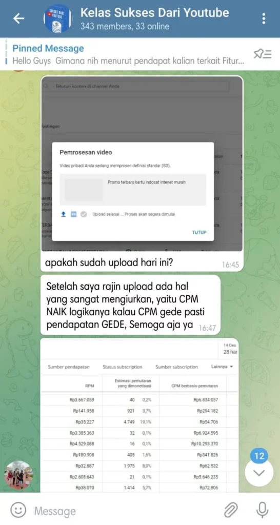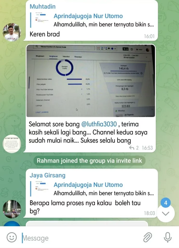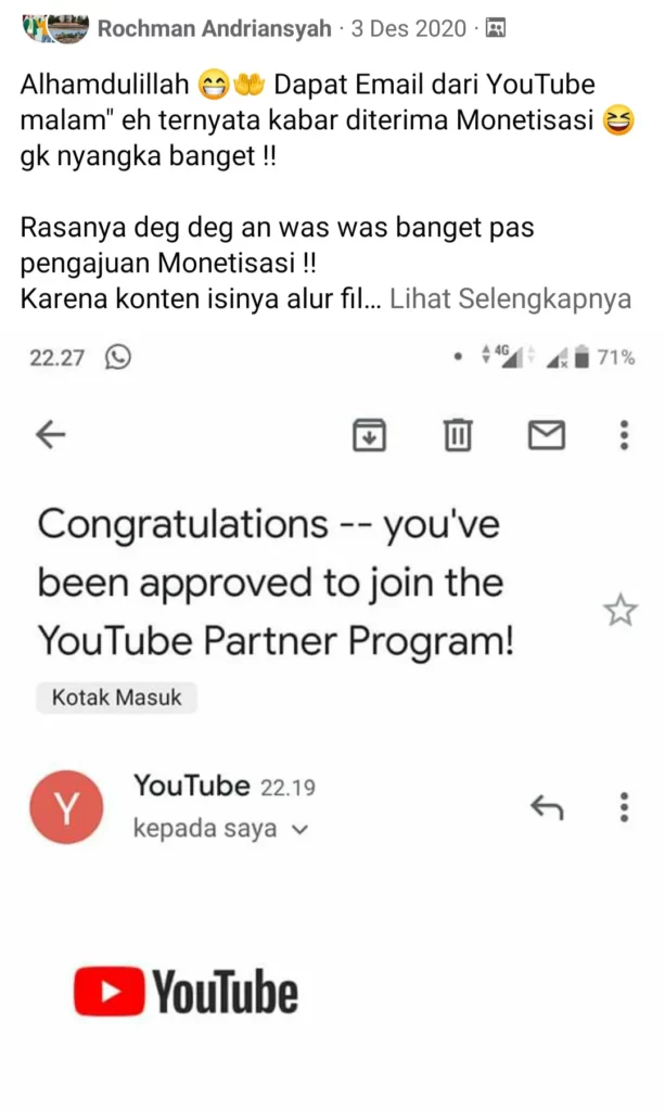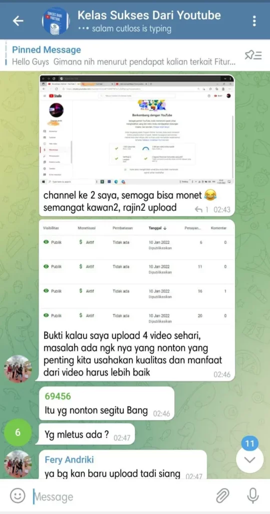 Untuk itu simak beberapa hasil dari member yang sudah sukses monetisasi channel youtubenya.