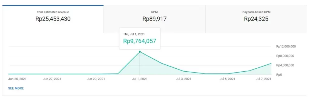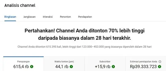 Contohnya adalah di channel saya, saya sudah tidak terlalu sering upload video (dibandingkan dengan awal berkarya), dalam jangka waktu 1 bulan saat ini saya hanya upload sekitar 2-3 video saja namun penghasilan terus meningkat.