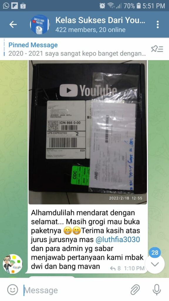 Facebook Group & Telegram Community (eksklusif): untuk saling support dan networking bareng Youtuber lainnya.